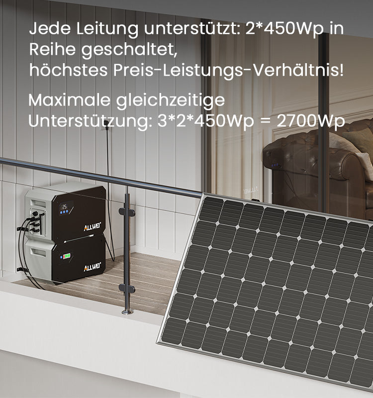 Für einen einzelnen MPPT am BM1600 beträgt die maximale Leistung 800 W.