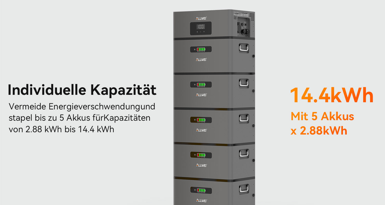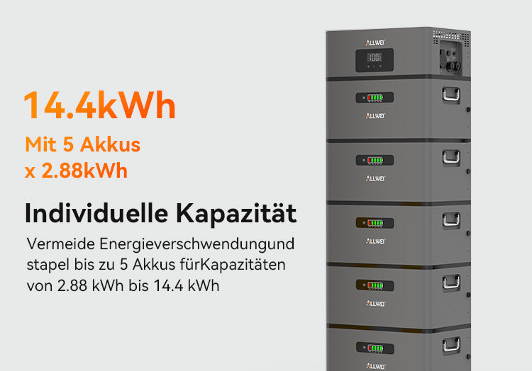 ERWEITERBARE KAPAZITÄT: Einfach bis zu 5 Erweiterungsbatterien für mehr Leistung hinzufügen. Gestapelt und einsatzbereit.