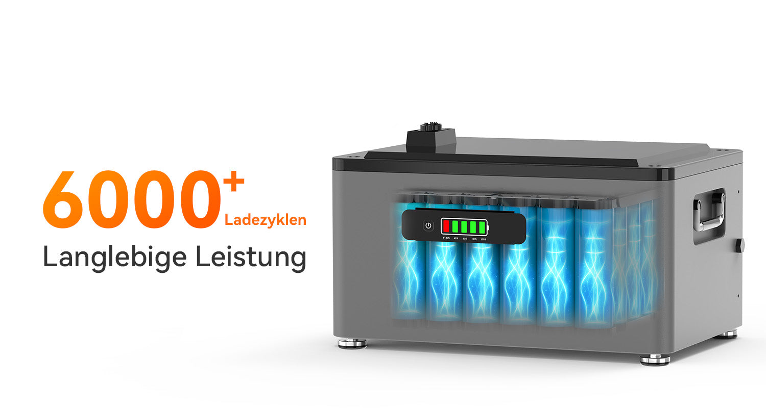 Lange Lebensdauer: Zuverlässige Leistung für bis zu 6.000 Ladezyklen und eine 6-jährige Herstellergarantie.